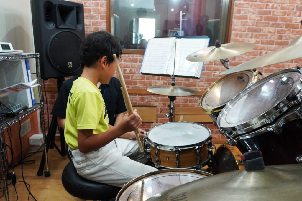 そして自身の演奏と併せて気になるのが、同年代の受講生による発表。他の出演者の演奏を見ることがご本人のドラムの上達に繋がる良い刺激になって頂けたらと、真剣にご観覧頂いている姿を見るたびに思うばかりです。
