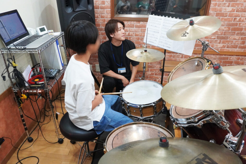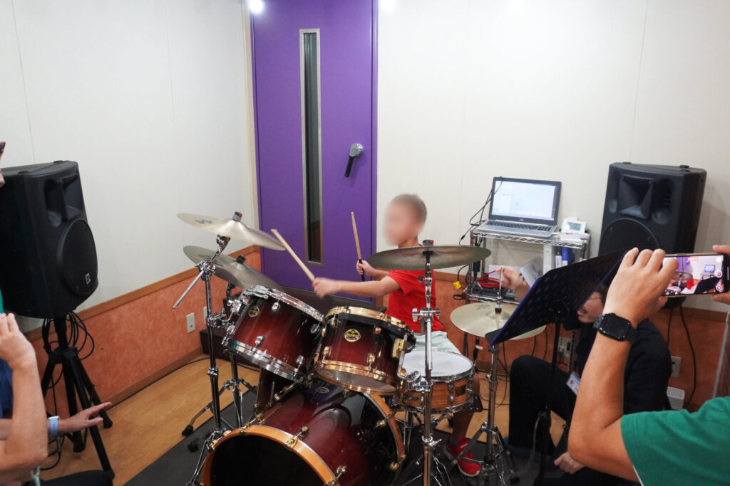 そして自身の演奏と併せて気になるのが、同年代の受講生による発表。他の出演者の演奏を見ることがご本人のドラムの上達に繋がる良い刺激になって頂けたらと、真剣にご観覧頂いている姿を見るたびに思うばかりです。